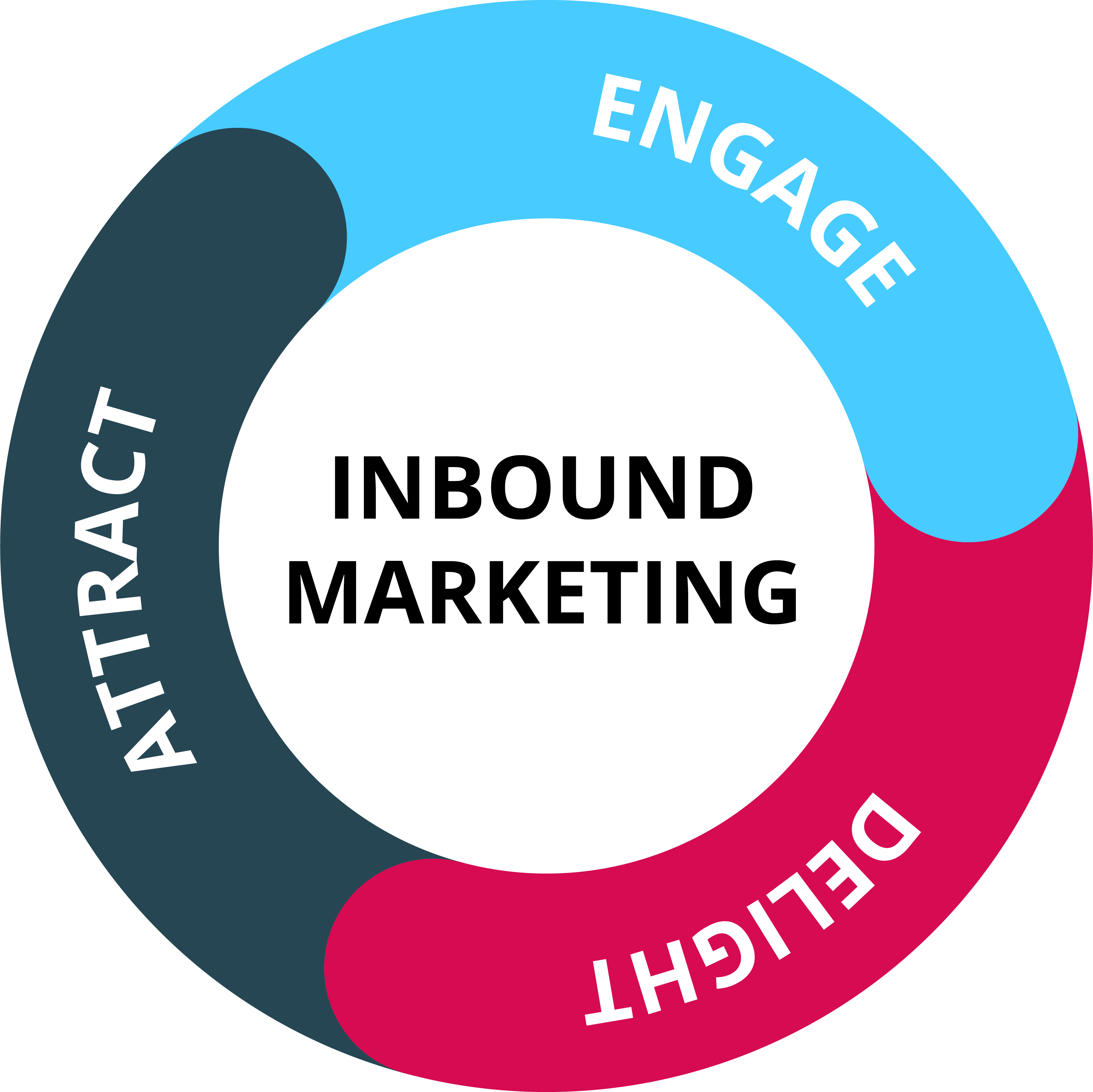 Volgens de inbound marketing methode van HubSpot trek je de juiste leads aan, zorg je voor interactie met waarde en blijf je de klant ondersteunen tot na het moment dat ze voor jouw dienst hebben gekozen. Attract, engage en delight wordt het genoemd. Marketing, sales en service werken samen om alle onderdelen nauw op elkaar aan te laten sluiten. Hierbij streef je ernaar de ervaring van de klant zo goed te maken, dat het uiteindelijk voor groei zorgt.